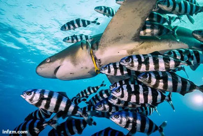 潛水員JacekDybowski來到兄弟島附近的紅海海域潛游,發(fā)現(xiàn)了令人心痛的一幕,這頭白鰭鯊的脖子上套著一個(gè)塑料環(huán),塑料的邊緣嵌進(jìn)它的肉里,勒出了了一道深深的傷痕,看上去十分痛苦。
