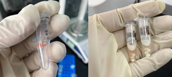 實驗步驟:將小鼠腫瘤組織放入離心管中,加入專用研磨珠,加入試劑,設置機器頻率和研磨時間